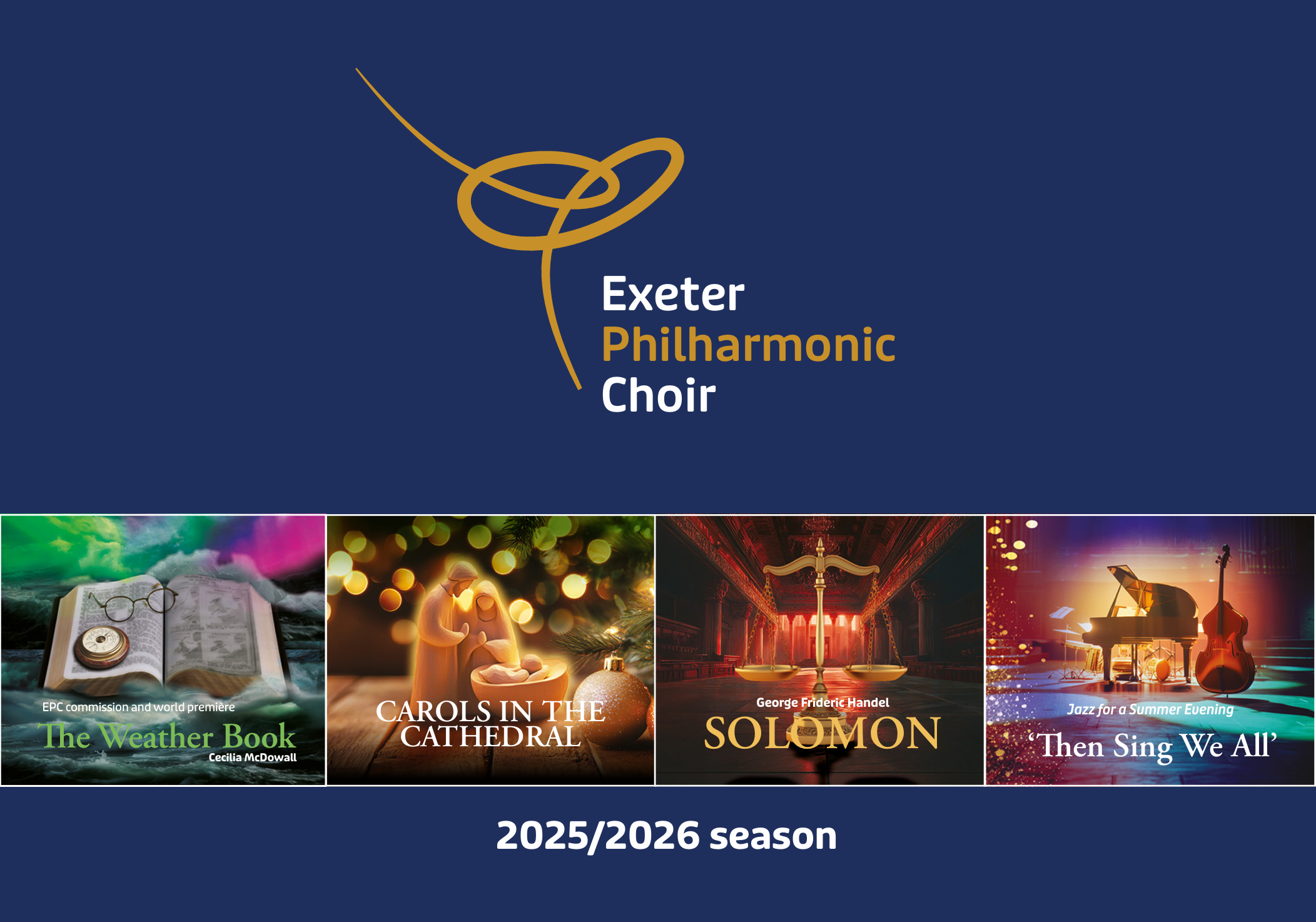 Exeter Philharmonic Choir, which has around 100 members, has a long tradition of singing a wide range of choral music, old and new. It presents three major concerts a year and two evenings of Christmas carols in Exeter Cathedral.